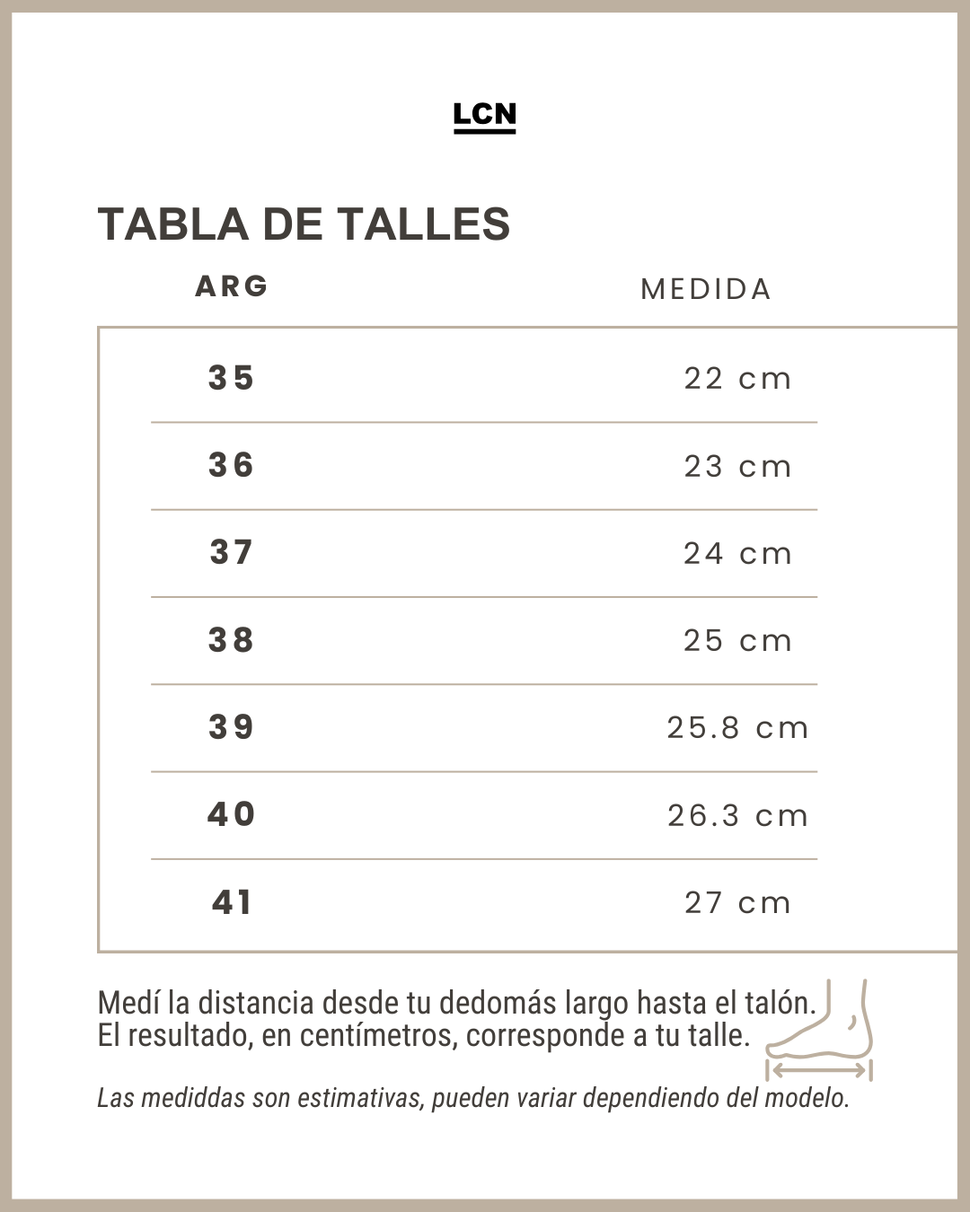 - Siempre medir el pie en centímetros, preferentemente al final del día cuando el pie está más dilatado.